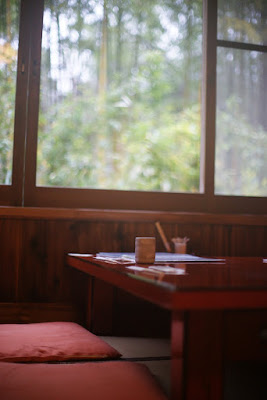 谷のほうへ降りて早めのお昼です。サンシャイン修善寺の人に、有名な蕎麦屋さんということで朴念仁というお店を紹介してもらっていたので、そこへ。